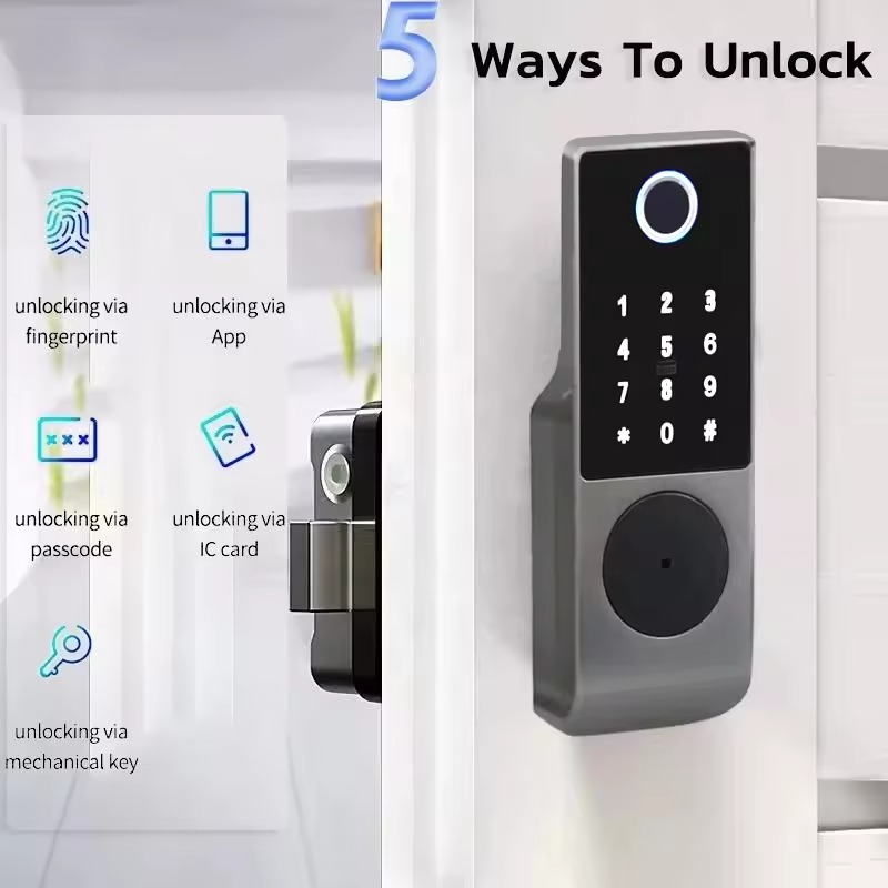 - Unlock methods:APP + Fingerprint + Password + Card + Key