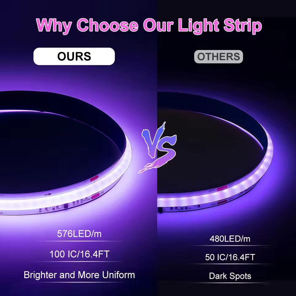 - [RGB+IC with Gradient Effects & DIY- Friendly] :With the ability to individually configure each of the strip's ten segments, each segment can have different colors, dimming levels, and effects. (*Please note: RGB+IC is only available for colorful (RGB) scenes, but not for tunable white.) Plus, the LED strip is cuttable, extendable up to 32.8 ft (the extension strip is sold separately), and re-attachable, making it perfect for DIY projects