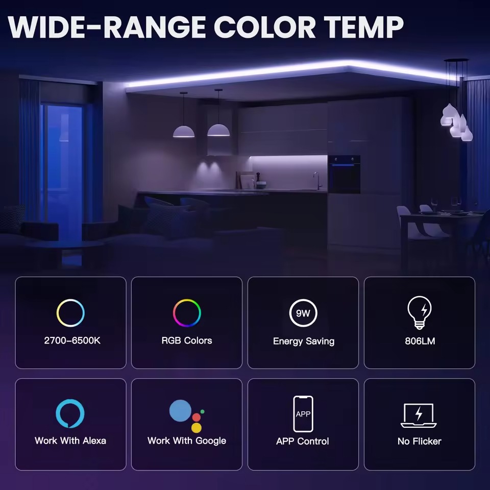 - Ultra-Wide Tunable Whites: Delivering superior illumination with a lumen of 1100lm, this LED bulb offers a broad spectrum of shades with a wide-range color temperature range of 2700-6500K and a color rendering index of Ra>90, transforming your space with the perfect light to match any mood or occasion.